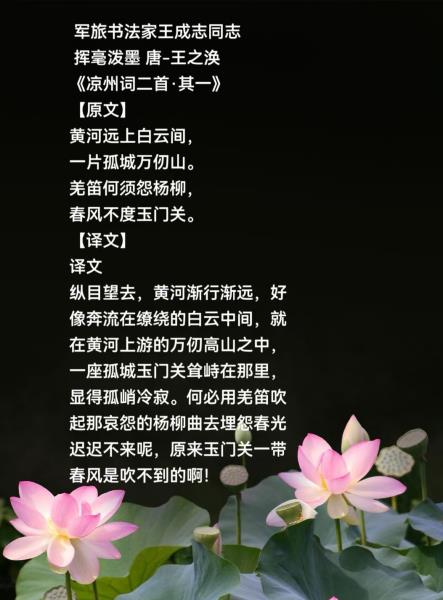 纵目望去,黄河渐行渐远,好像奔流在缭绕的白云中间,就在黄河上游的万仞高山之中,一座孤城玉门关耸峙在那里,显得孤峭冷寂。何必用羌笛吹起那哀怨的杨柳曲去埋怨春光迟迟不来呢,原来玉门关一带春风是吹不到的啊!