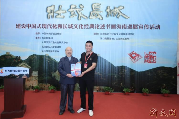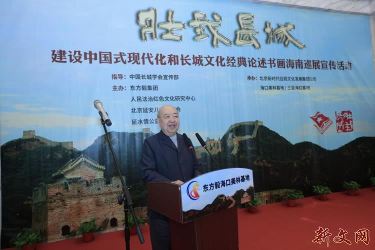 海南的冬天阳光明媚,温暖如春,到处是欢乐祥和的景象。1月15日上午,中国长城学会宣传部指导,东方毅集团公司、人民法治红色文化研究中心、北京延安儿女联谊会、延水情公益促进会主办,东方毅集团/北京新时代征程文化发展集团公司和海南美林基地承办,新文网协办的“壮我长城”建设中国式现代化和长城文化经典论述书画海南巡展宣传活动”开幕式在海南澄迈美林基地举行。