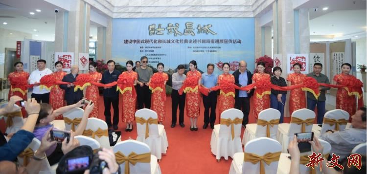 出席活动的中国长城学会领导、主办单位领导、老将军和嘉宾代表为“壮我长城”书画海南巡展宣传活动剪彩。