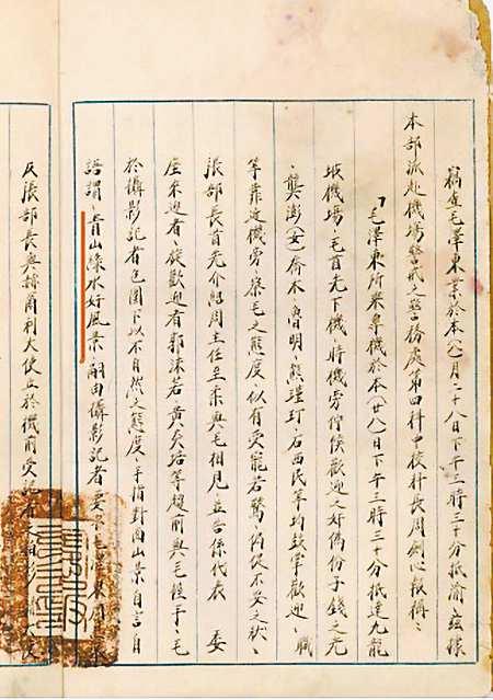 《参政员毛泽东在渝市之动态》由10份报告组成,共42页,9000余字。“此件为重庆谈判期间,由国民党派驻在红岩村和桂园的宪兵对毛泽东、周恩来、王若飞等人,进出红岩村和桂园等地活动进行严密监视的原始记录。”周勇介绍。