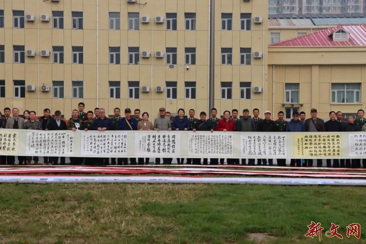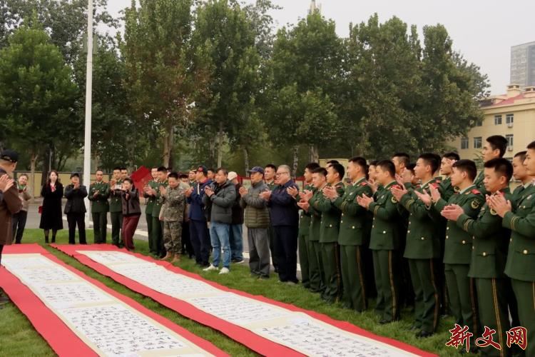 宽阔的绿色草坪上,一幅由全军61名老将军联合创作的百米书法长卷分段展开,笔走龙蛇、气势恢宏。长卷书录了毛泽东、朱德等老一辈领导人创作的60首长征主题诗词,既彰显铁血军魂,也讴歌了崇高的革命理想。老首长、书法家与部队官兵一同驻足欣赏,感受长征诗篇与书法笔墨交融彰显的艺术魅力。