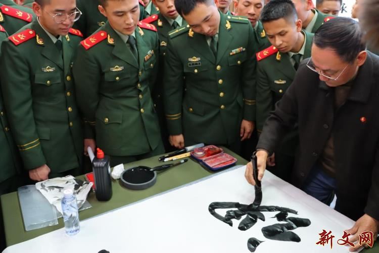 活动现场,挥毫畅书的老首长与书法家身旁围满了年轻官兵,请教书法技艺、交流军旅体会,老少互动,气氛热烈。