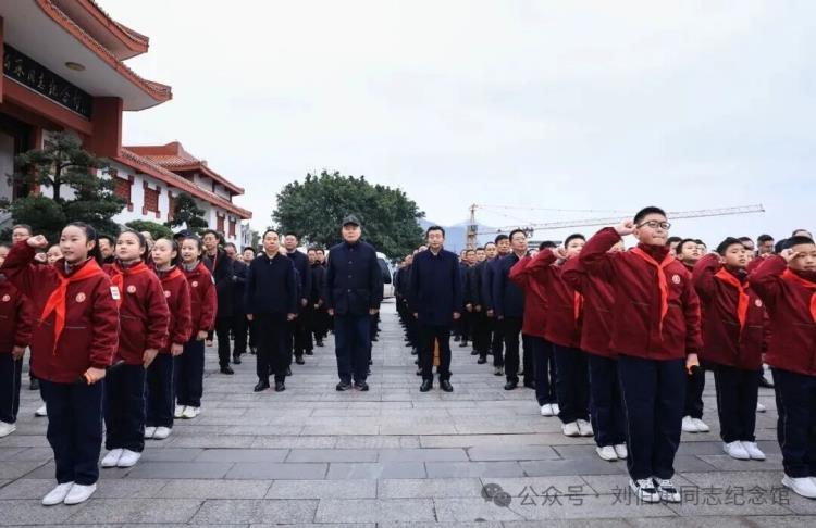 冬日的刘伯承同志纪念馆松柏静穆,元帅铜像巍然屹立。由刘伯承元帅亲属,区委、区人大常委会、区政府、区政协敬献的两个花篮整齐摆放在刘伯承元帅铜像前。上午9时许,举行敬献花篮仪式。首先由少先队员献词,接着在深情婉转的《献花曲》旋律中,刘蒙、蒲彬彬缓步上前仔细整理花篮缎带,缎带上“献给敬爱的刘伯承元帅”字样寄托着无限追思与崇高敬意。随后,全体在场人员向刘伯承元帅铜像行三鞠躬礼,现场气氛庄重肃穆。