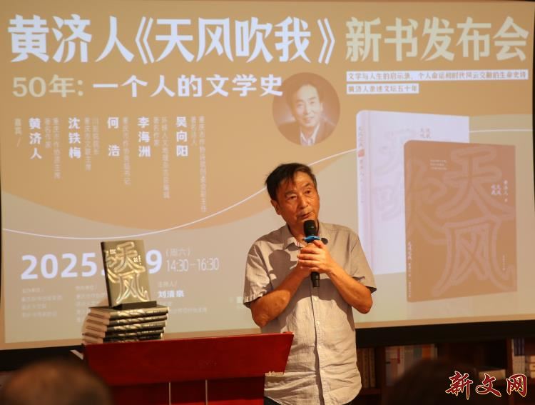 新文网-重庆讯(记者/陈发源)7月19日,由重庆出版社倾力打造,国家一级作家、重庆市作协原主席黄济人撰写的自传体文学著作《天风吹我》在重庆书城首发,黄济人以八十载人生阅历为墨,在这部凝结毕生思考的作品中,深刻镌刻了个体命运与时代洪流的深沉交响。