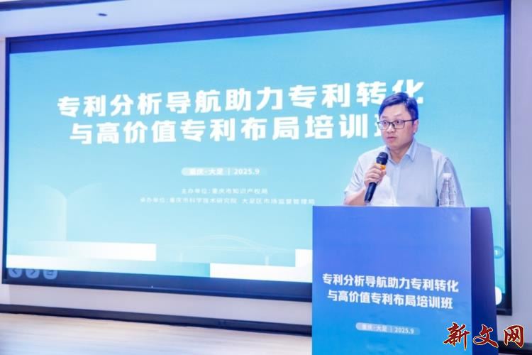 新文网-重庆讯(图文/常魁星 、刘洋东)九月的重庆秋高气爽,硕果盈枝。9月24日至26日,由重庆市知识产权局主办,重庆市科学技术研究院与大足区市场监督管理局联合承办的“专利分析导航助力专利转化与高价值专利布局培训班”在大足区成功举办。来自全市重点实验室知识产权负责人、高新技术企业负责人、技术总监、研发骨干、企业知识产权管理部门负责人、科技型中小企业及孵化器代表、科研院所技术转移相关人员共百余人齐聚一堂,共学专利运营知识,共探创新发展路径。