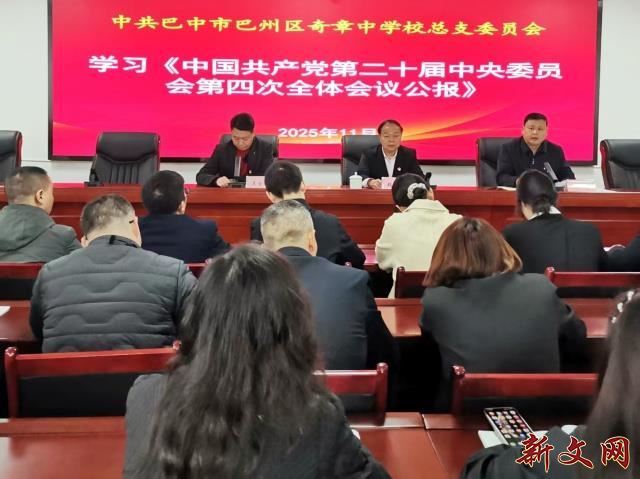 新文网-四川讯(图文/常魁星 张仕文 郭长明)近日,四川省巴中市巴州区奇章中学党总支委员会开展了深入学习贯彻党的二十届四中全会精神主题党日活动。学校领导班子、中层干部、全体党员、入党积极分子参加了活动。党总支副书记吴金成主持活动。