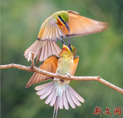 二只栗喉蜂虎接吻中。新文网顾问 张清堂 摄