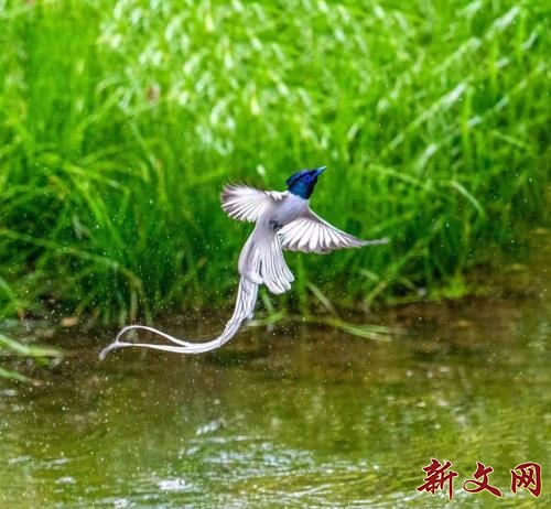 在民间,人们更喜欢将“绶带鸟”称为“寿带鸟”,寓意长寿。白色绶带鸟时而在树梢上整理羽毛歇息,时而跃入水中戏水,每每都会引起阵阵急促的快门声浪。