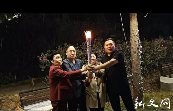 夜幕降临,东莞桃源户外篝火熊熊燃起,火炬传递进入高潮。全体人员高举火炬接力相传,高喊“学雷锋、学双百人物”,许多代表传递完毕后,仍高举火炬围绕篝火奔跑接力,志愿者与群众纷纷加入,现场气氛热烈、感人至深,充分展现了全民参与、全民向善的高涨热情。