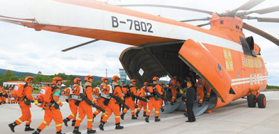 图为内蒙古大兴安岭森林消防支队开展紧急登机训练。张 枨 温柏志摄影报道(人民视觉)