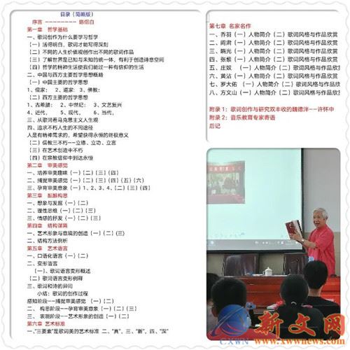 《歌词创作教程》由中央文史馆馆员、文化部原副部长陈晓光题写书名,6位全国著名音乐教育专家写了寄语祝贺新书出版。