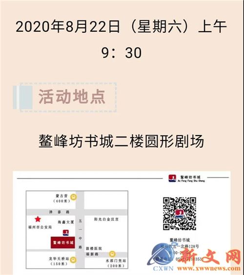 据悉,本周六22日上午九点半的首发式是在福州鳌峰坊书城二楼举行。届时福建省炎黄文化研究会常务副会长、福建省委宣传部原副部长马照南先生,福建省文联党组成员、秘书长邱守杰先生,福建新华发行集团副总经理何强先生,95岁老作家、诗人陈侣白老师,福建省音协主席苏力先生,海峡文艺出版社林玉平社长,林滨副社长将出席新书发布会。