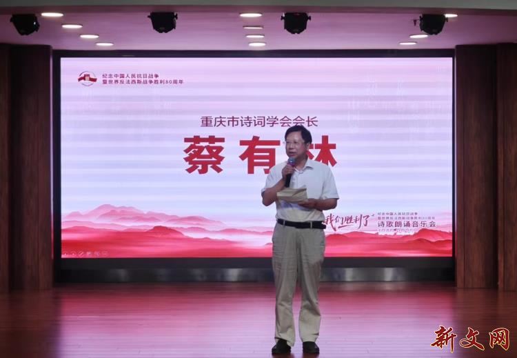 朗诵会上,重庆市诗词学会会长蔡有林致辞时回顾了14年抗战历程,强调以诗歌歌赞爱国情怀与英雄气概,铭记“落后就要挨打”的教训。