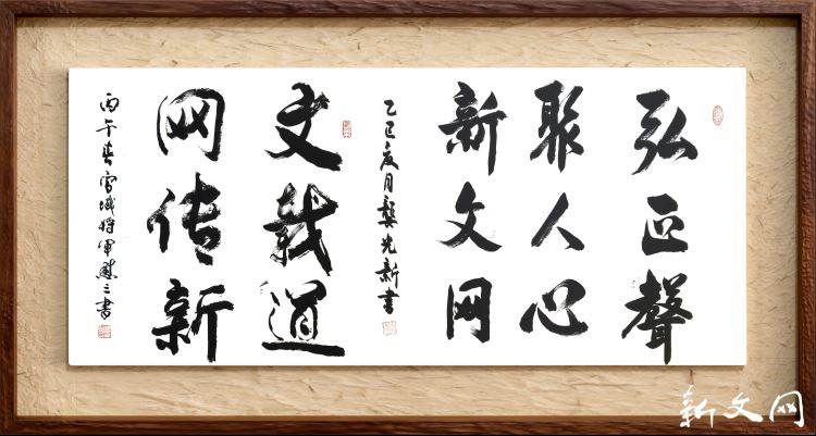 两位将军的题词,既是殷切嘱托,更是深情祝福。龚光新将军的“弘正聲 聚人心”,祝福新文网在纷繁的网络舆论场中始终高扬主旋律,如号角般汇聚起亿万群众的向心之力;方慰三将军的“文载道 网传新”,则祝福平台以文化人、以网创新,在守正与创新中走出一条红色传播的康庄大道。一纸之上,“弘正”与“载道”共鸣,“聚心”与“传新”同频,仿佛两位老兵将军并肩而立,将半生戎马淬炼出的信念与温度,悉数托付给这个年轻的网络阵地。