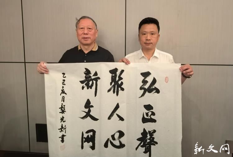 目睹两位将军同纸题词,新文网总编辑薛成毅感慨万千。他表示:“将军们戎马一生,如今将铁血丹心倾注于笔墨,在同一张纸上共同表达对新文网的嘱托与信任,这是莫大的鼓舞,也是一份沉甸甸的祝福。‘弘正聲’与‘文载道’高度契合我们的办网初心,‘聚人心’与‘网传新’则为我们指明了前行的方向。