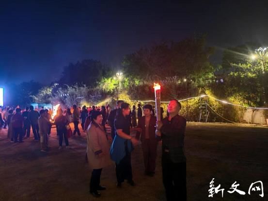 夜幕降临,东莞桃源户外篝火熊熊燃起,火炬传递进入高潮。全体人员高举火炬接力相传,高喊“学雷锋、学双百人物”,许多代表传递完毕后,仍高举火炬围绕篝火奔跑接力,志愿者与群众纷纷加入,现场气氛热烈、感人至深,充分展现了全民参与、全民向善的高涨热情。
