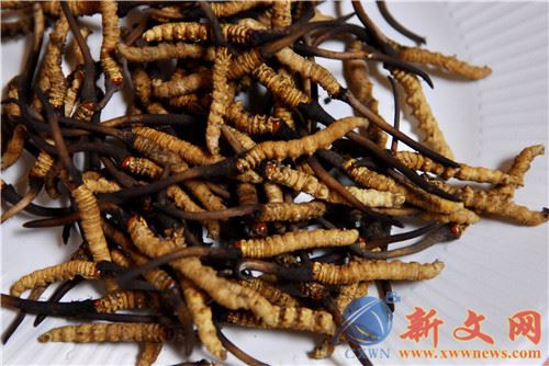 sinensis (Berk.)Sacc. 寄生在蝙蝠娥科昆虫幼虫上的子座及幼虫尸体的复合体。夏初子座出土、孢子未发散时挖取,晒至六七成干,除去似纤维状的附着物及杂质,晒干或低温干燥。