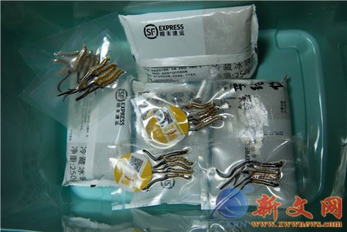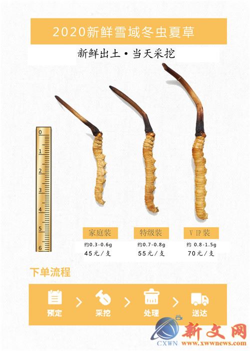 每根鲜虫草售价45元,真空包装,专用运输冰袋盒(免费)和礼品包装盒(付费)我们每只鲜虫草只赚10-15元,其中有五元用于10万根树苗的购买,其它费用就是刷草的人工费和运输包装费。