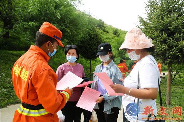 “您好同志,当前正值防火紧要期,请您熄灭手中的香烟,切勿携带火种进山进林,谢谢配合……”进入五月份以来,霍城县复工复产逐步恢复,林区景点逐渐开放,进山入林人员骤增。为了强化驻地群众和游客的森林防火意识,活动期间,指战员们深入景区、客运站、商业区等人口密集地,利用宣传车流动广播、悬挂防火宣传标语等形式,大力开展森林防火宣传教育,引导广大群众牢固树立“森林防火、人人有责”的意识。